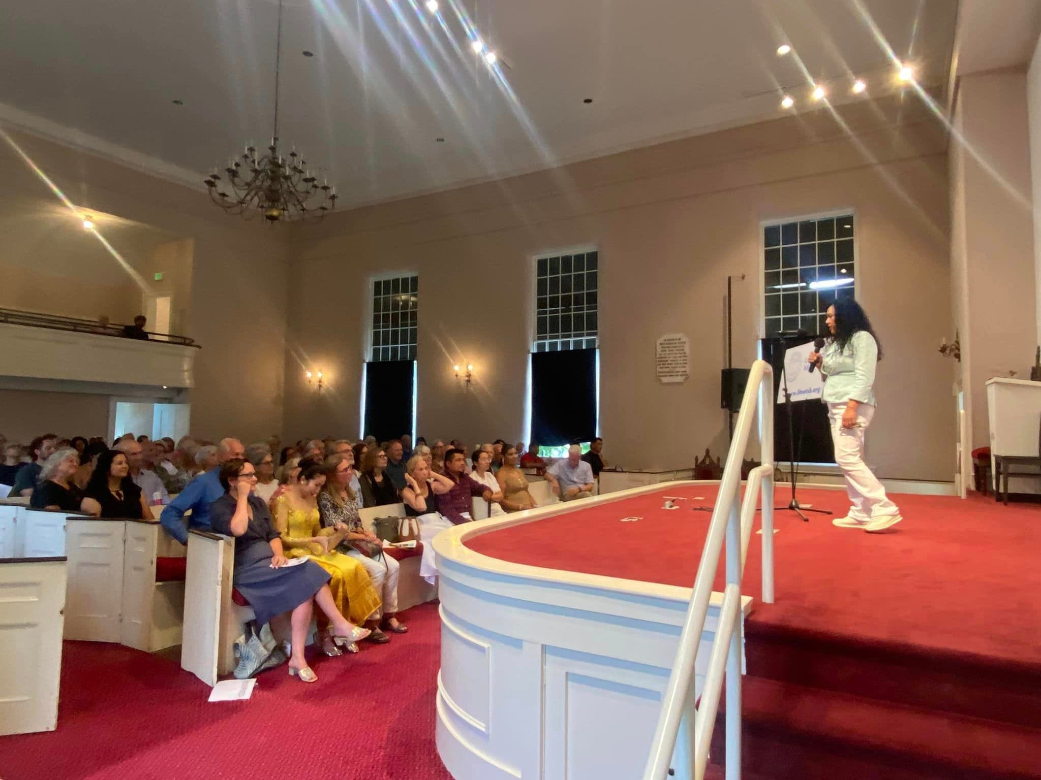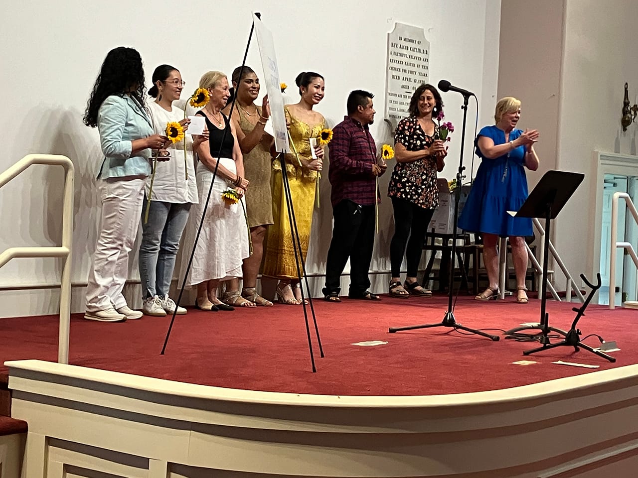 Five LitNet learners and one LitNet tutor took the stage at the New Marlborough Meeting House to perform their personal stories on the theme of Challenge. Participants worked for several weeks with local storytelling coach Sheela Clary, as well as their LitNet tutors, to hone and rehearse their stories. This was the first time most of these learners ever spoke publicly in English, and they did it in front of a completely packed house!